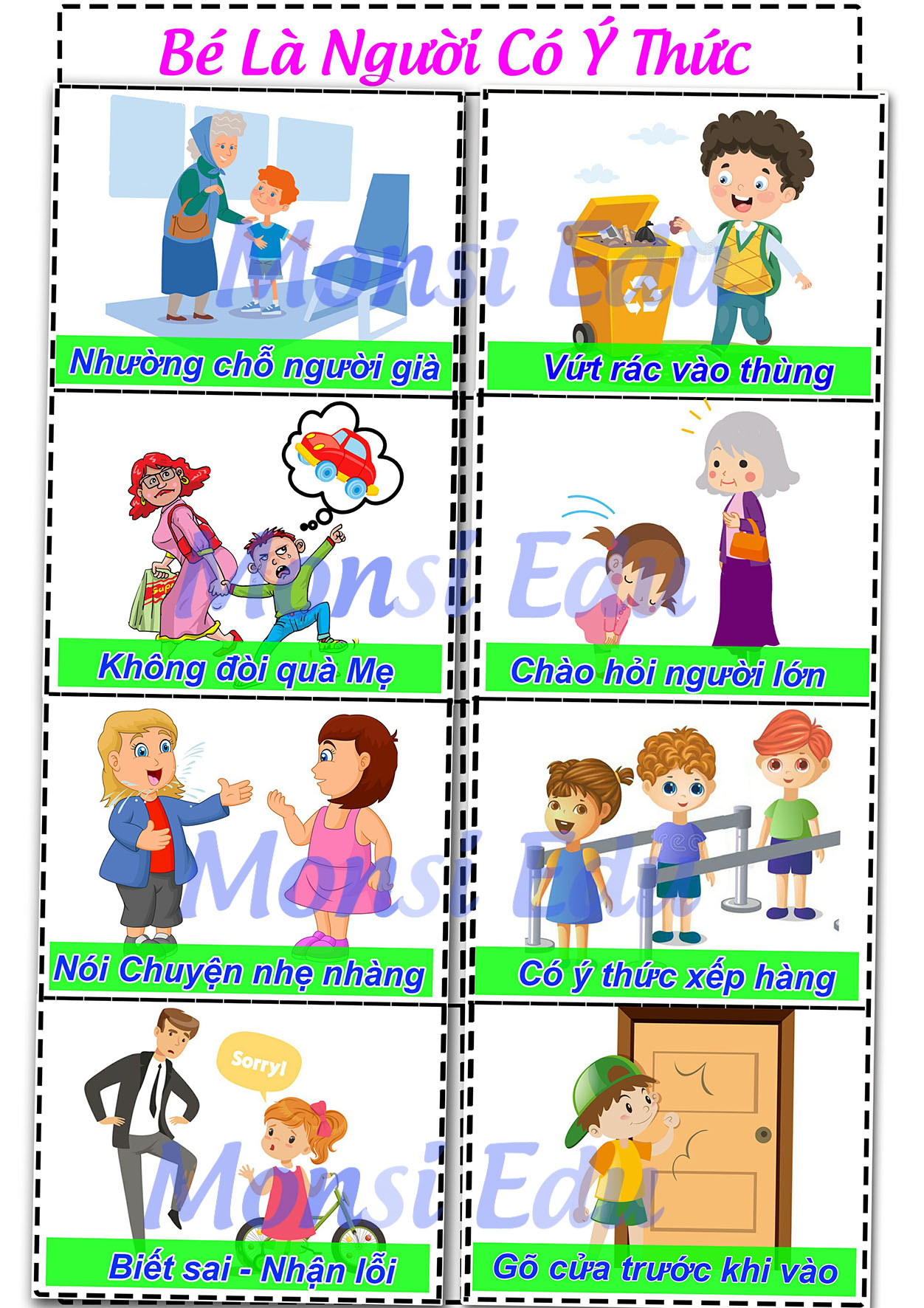 Gồm 10 Chủ đề dạy bé hành vi & kỹ năng trong cuộc sống. Sách được thiết kế chuẩn theo phương pháp montessori.