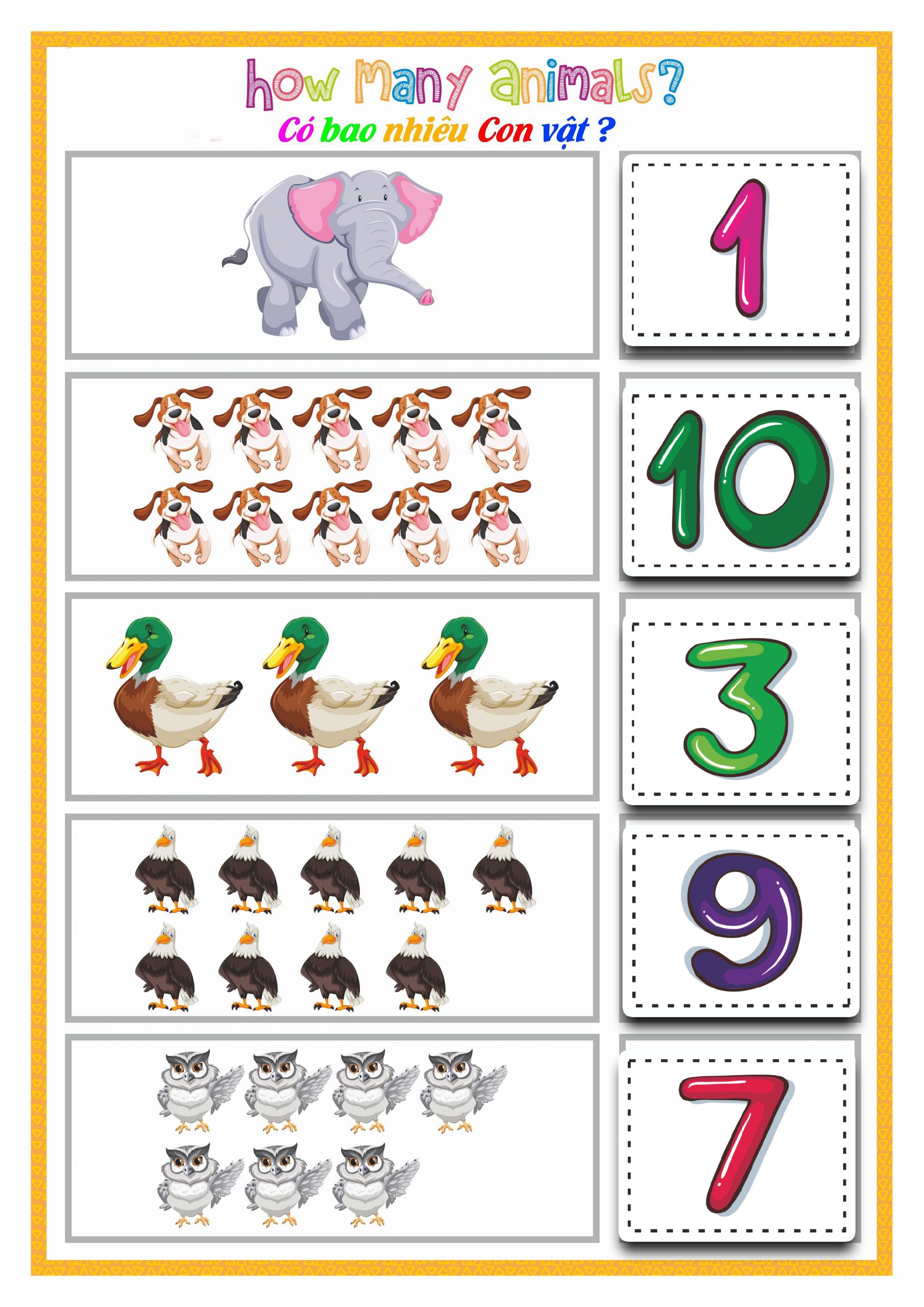 • Đếm ngón tay, đếm con vật